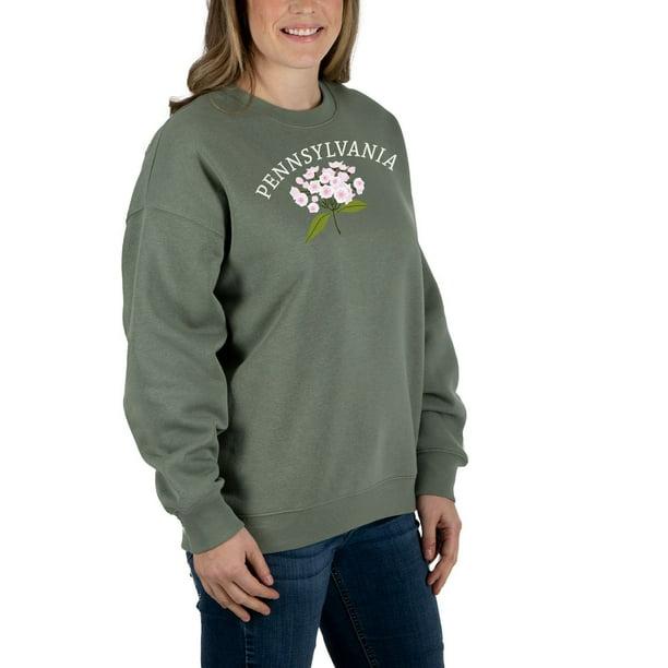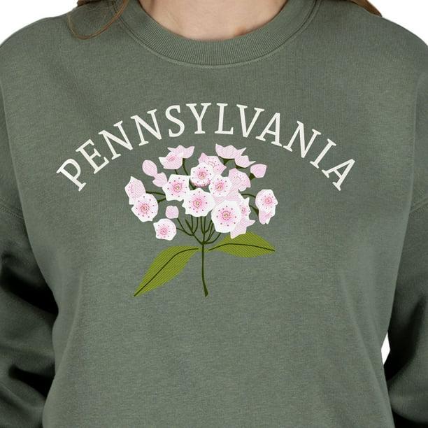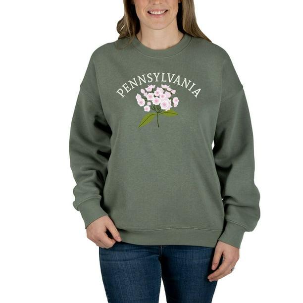 - Design: The sweatshirt features a floral design and Pennsylvania's name and/or state outline embroidered on the chest.