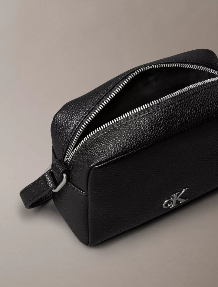 A modern camera bag with structured shaping. Adjustable at the shoulder strap for personalized wear. Finished with a metal CK monogram logo at the front. Details Top zip closure Crossbody strap...