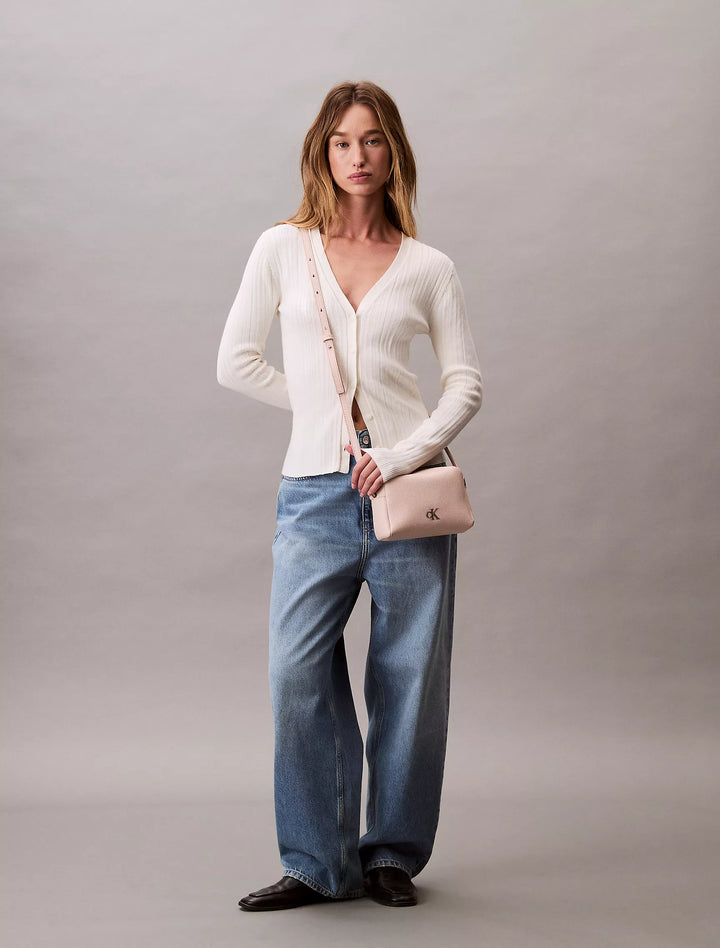 A modern camera bag with structured shaping. Adjustable at the shoulder strap for personalized wear. Finished with a metal CK monogram logo at the front. Details Top zip closure Crossbody strap...