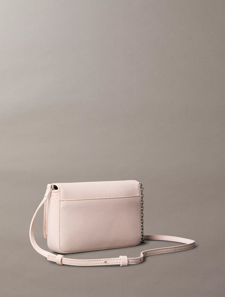 The Calvin Klein Archive Hardware Flap Crossbody Bag – Hushed Pink is a compact, structured bag with a soft, feminine colorway and the brand’s signature minimalist detailing — perfect for carrying just the essentials in style.