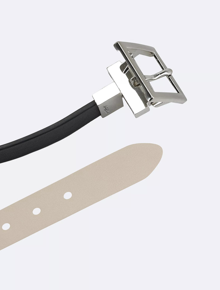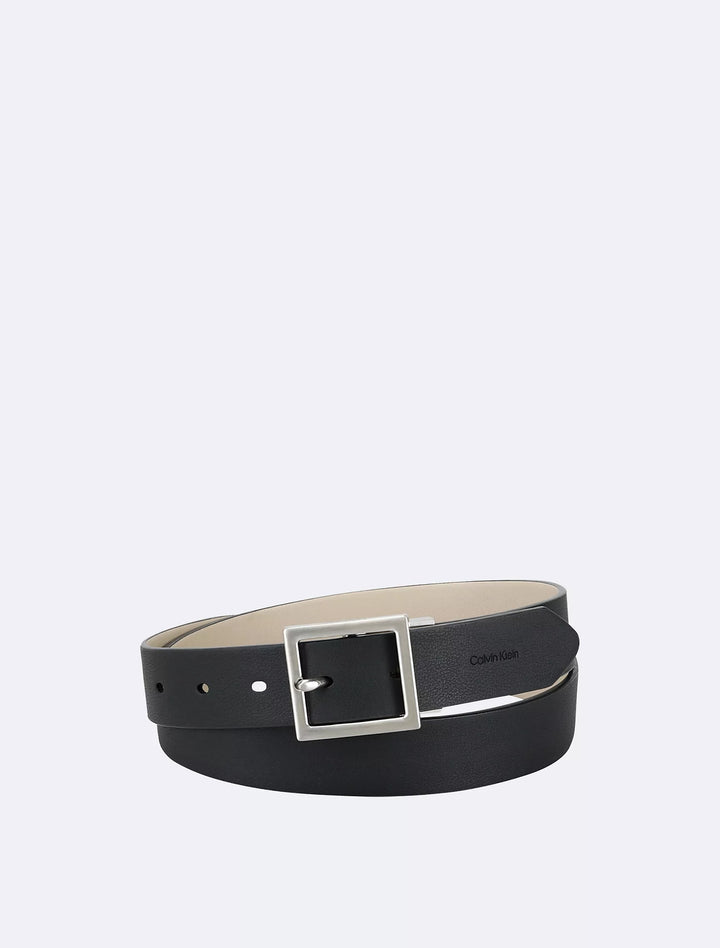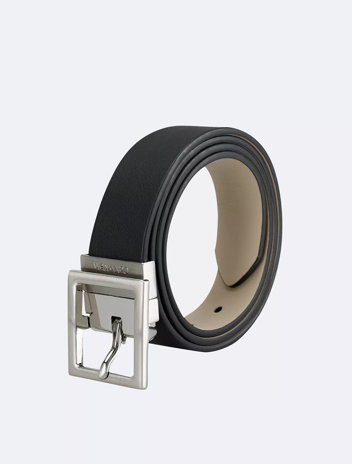 The Calvin Klein Reversible Center Bar Buckle Belt – Black / Crockery is a versatile, two-tone belt designed for both style and practicality, giving you two color options in one sleek accessory.