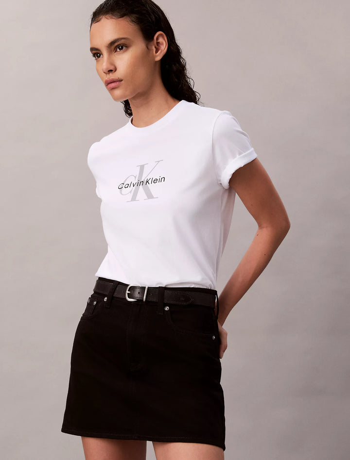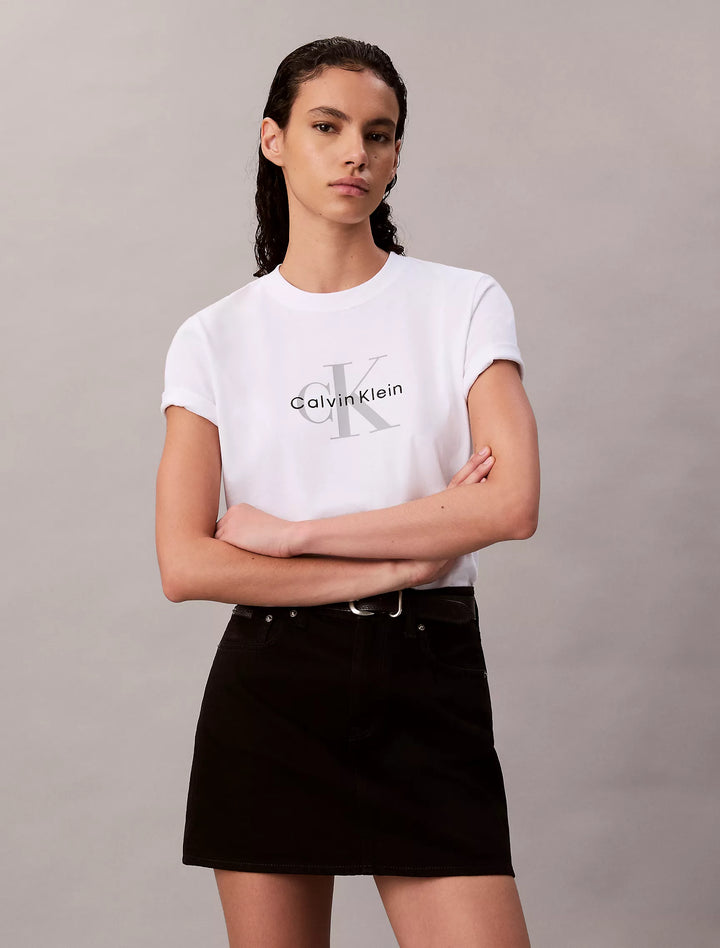 The Calvin Klein Women Monogram Logo Tee – Brilliant White is a minimalist, everyday T‑shirt featuring Calvin Klein’s iconic monogram logo, designed for comfort and timeless style.