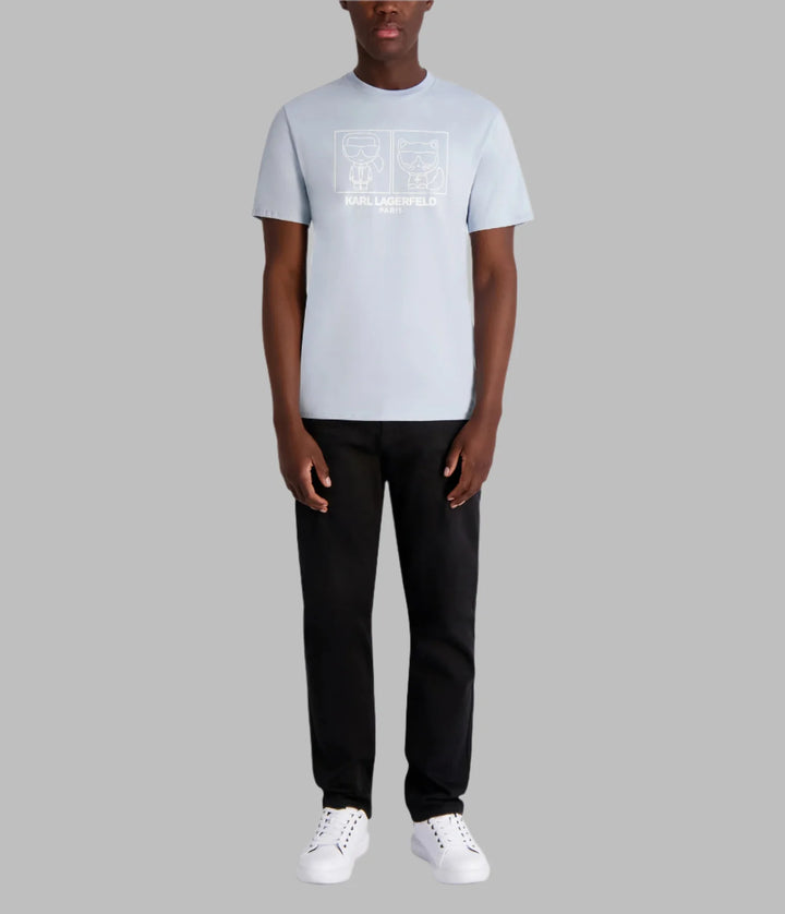 The Karl Lagerfeld Paris Karl & Choupette T‑Shirt – Light Blue is a playful, fashion‑forward tee celebrating Karl Lagerfeld and his beloved cat, Choupette — one of fashion’s most famous duos.
