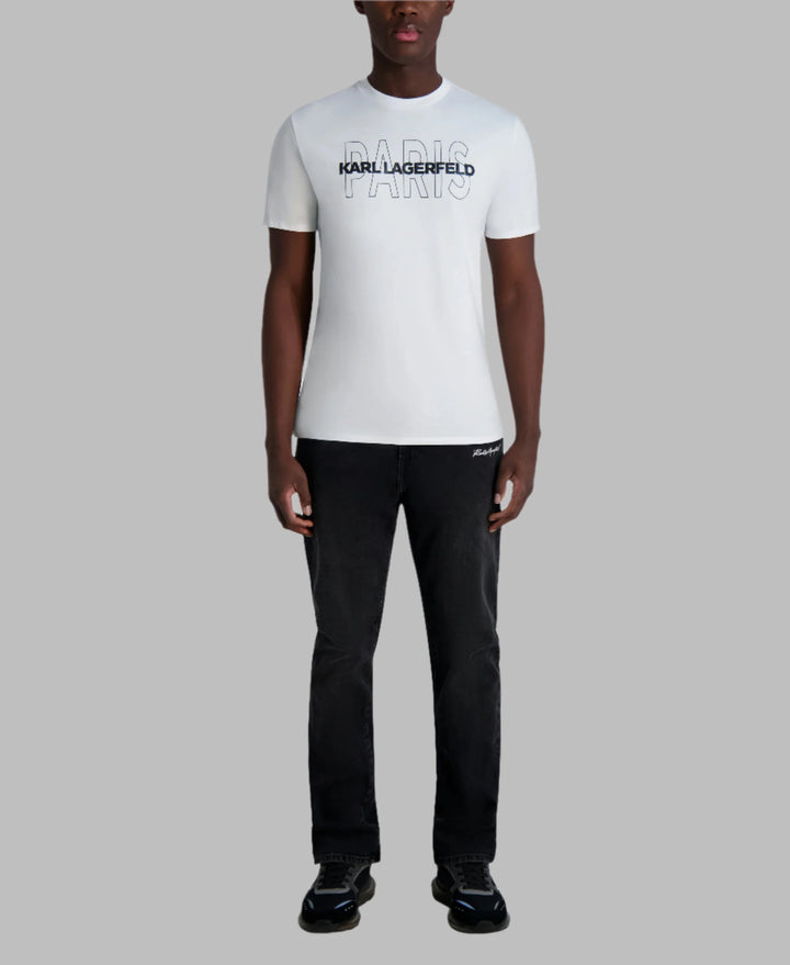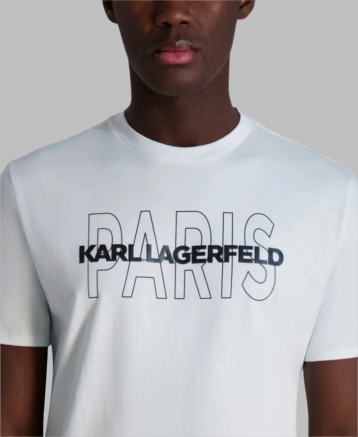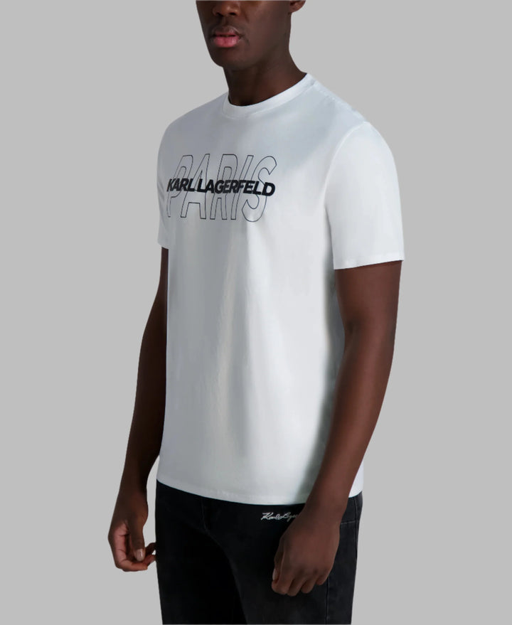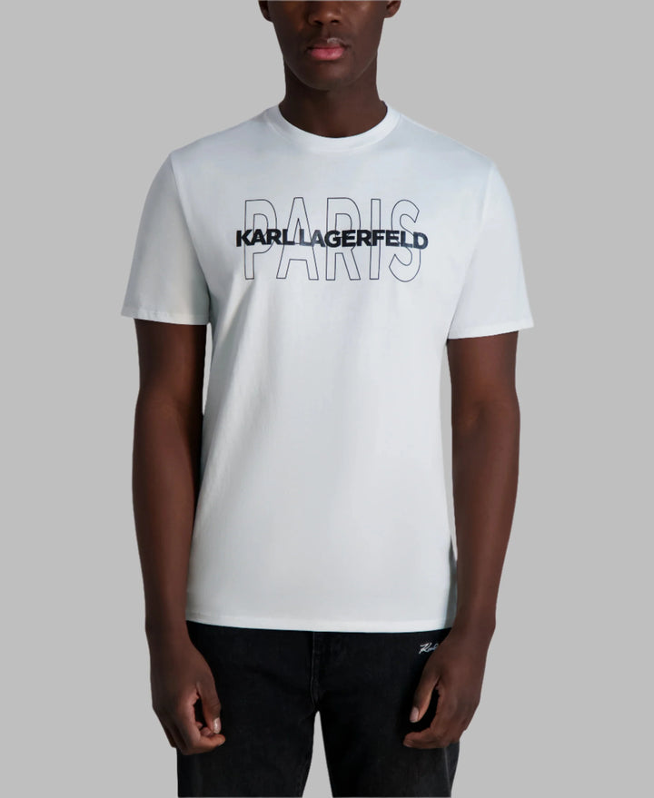 • Color & Style: Crisp white base with a large “Paris” outline and Karl Lagerfeld logo across the chest for bold yet refined branding.