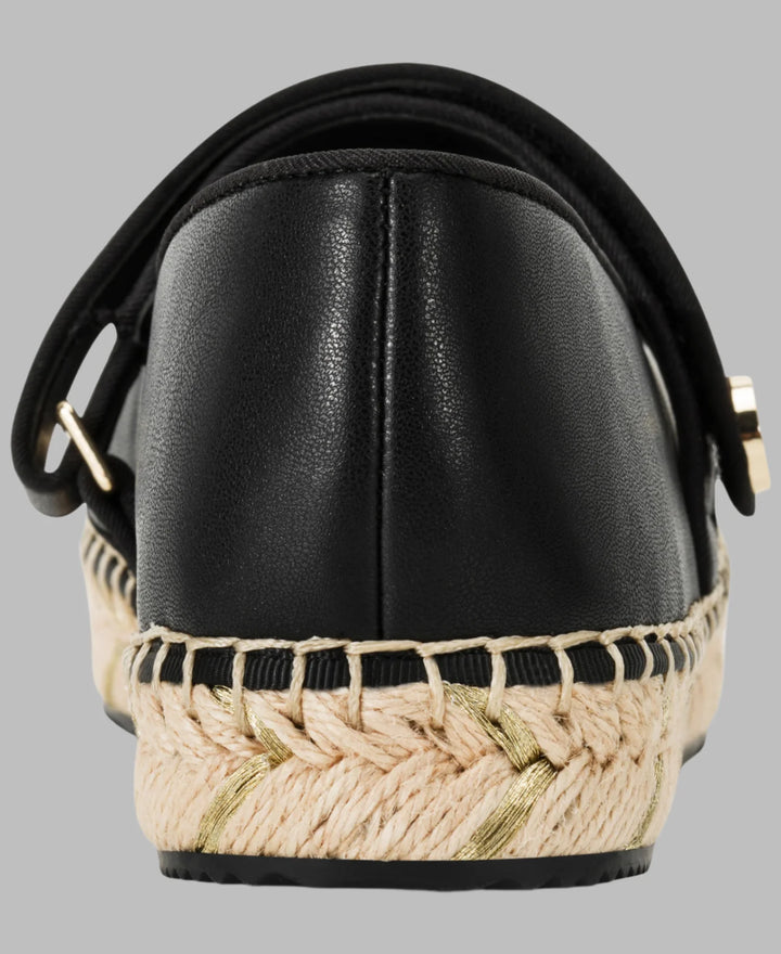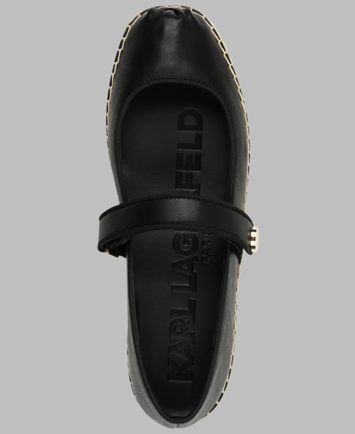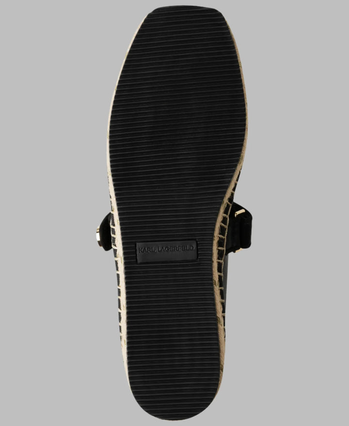 The Karl Lagerfeld Paris Mary Jane Espadrille | Black is a stylish flat that combines the timeless Mary Jane silhouette with the casual, summery vibe of an espadrille. It’s part of the Karl Lagerfeld Paris footwear line, designed to be both chic and comfortable.