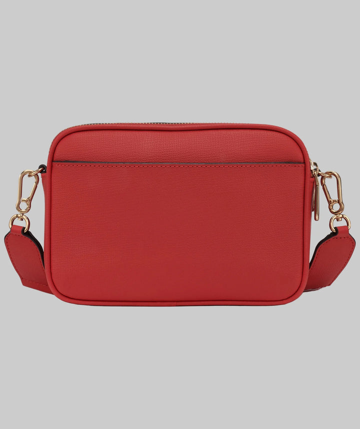 The Karl Lagerfeld Paris Maybelle Camera Crossbody – Admiral Red is a compact, structured crossbody bag from the brand’s Maybelle collection, designed for hands‑free wear with Karl Lagerfeld’s signature playful‑chic style — this time in a bold, deep red tone.
