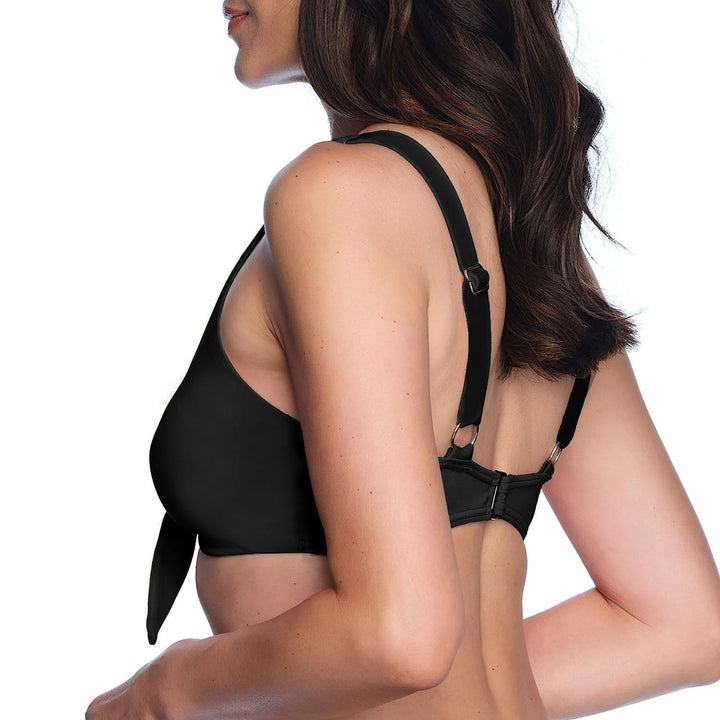 Design: Plunging V-neckline with a decorative tie at the center for a playful, feminine touch.