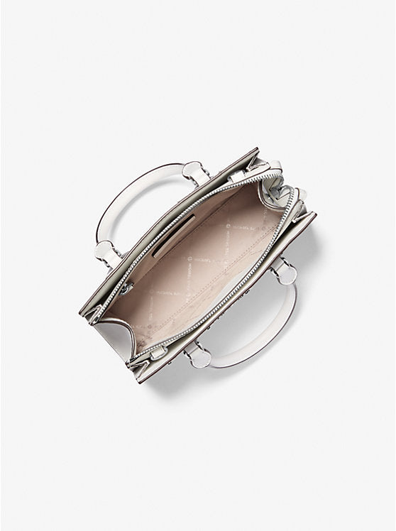 Michael Kors Sheila Small Studded Patchwork and Signature Logo Satchel - Optic White Multi