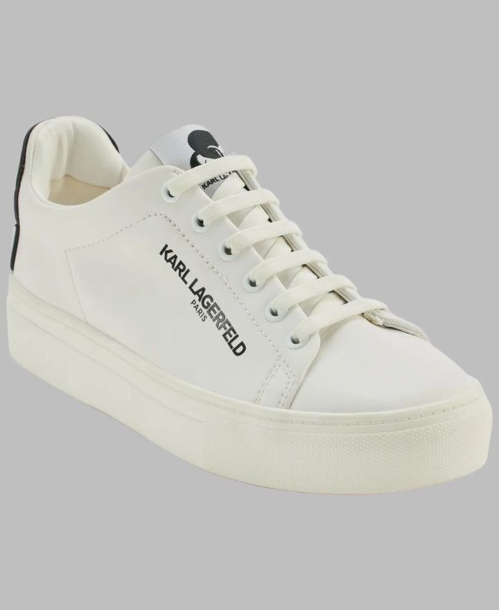 The Karl Lagerfeld Paris Chella Sneaker – Bright White is a sleek, platform-style lace-up sneaker that blends sporty comfort with the brand’s signature designer detailing.