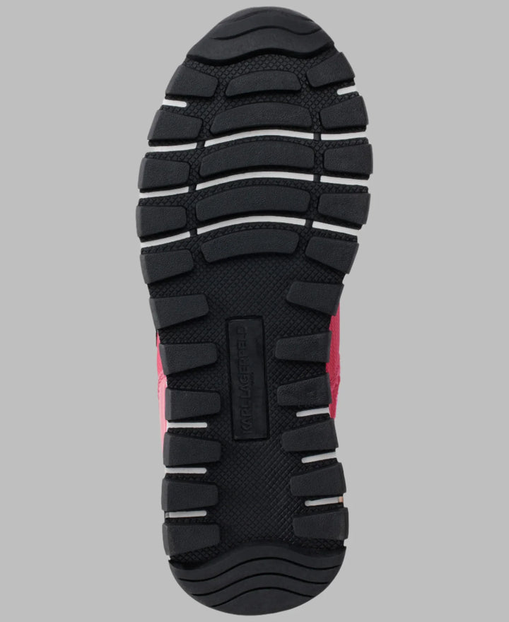 The Karl Lagerfeld Paris Mayu Lace-Up Sneaker – Pink is a sporty-chic fashion sneaker that blends vibrant color with the brand’s signature designer edge, making it a standout choice for casual and athleisure looks.
