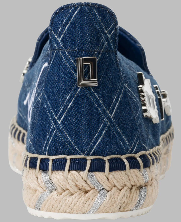 The Karl Lagerfeld Paris Michaela Cate Pins Espadrille – Blue is a playful, warm-weather flat that combines the easy comfort of an espadrille with Karl Lagerfeld’s signature novelty detailing.