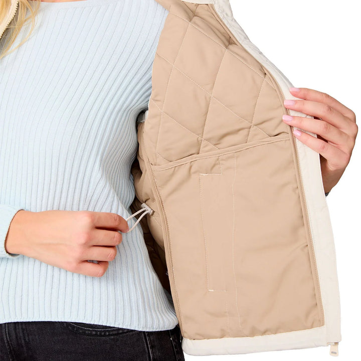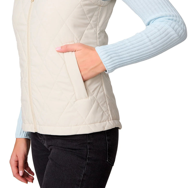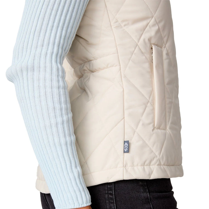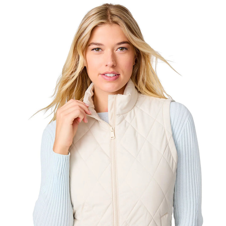 The Free Country Women’s Quilted Vest in Cream is a lightweight, eco-friendly layering vest made with recycled materials, designed to provide warmth, comfort, and style without bulk. It’s part of Free Country’s FreeCycle® line, which uses recycled plastic bottles to create sustainable outerwear.