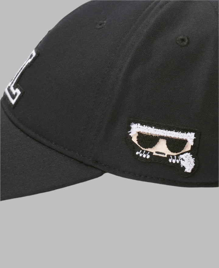 The Karl Lagerfeld Paris KL Varsity Patch Hat | Black is a sleek, sporty‑chic baseball cap from the Karl Lagerfeld Paris accessories line. It blends casual streetwear style with the brand’s signature fashion edge.