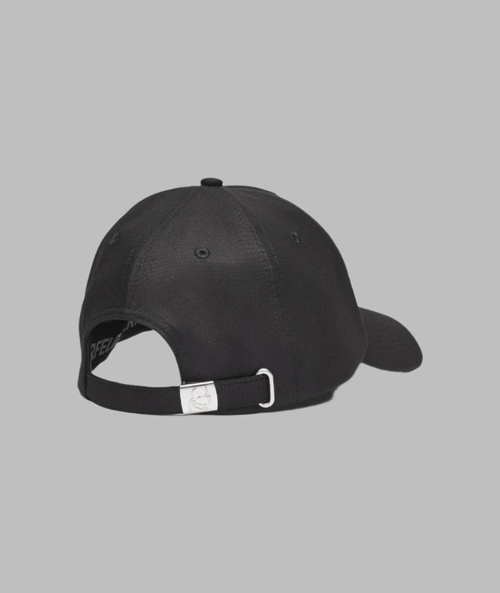 The Karl Lagerfeld Paris Krystal Karl Baseball Hat | Black is a sporty‑chic cap that elevates the classic baseball silhouette with a touch of sparkle, featuring Karl Lagerfeld’s iconic branding. It’s the darker twin to the white version, offering a sleek, versatile look with the same crystal embellishment.