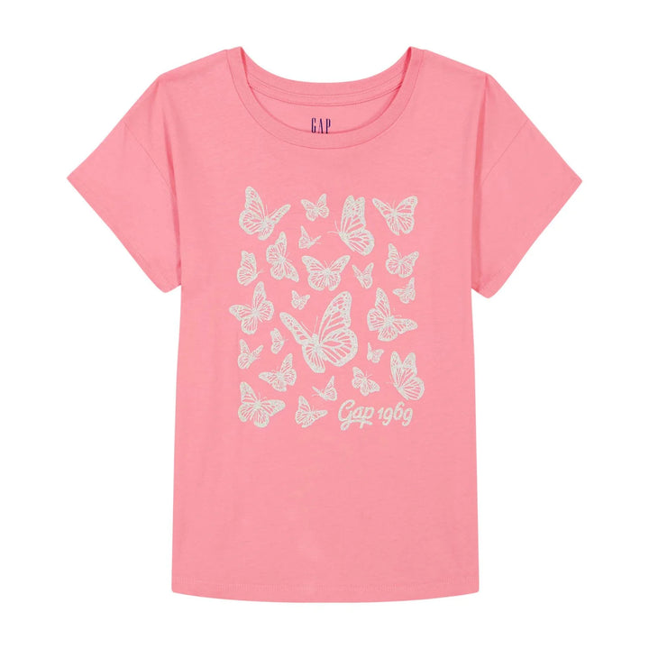 The Gap Kids Girls Short Sleeve Tee in Pink is a soft, everyday cotton T-shirt designed for girls, often featuring the iconic GAP logo or playful graphics. It's available in various shades of pink and sizes ranging from XS to XL.