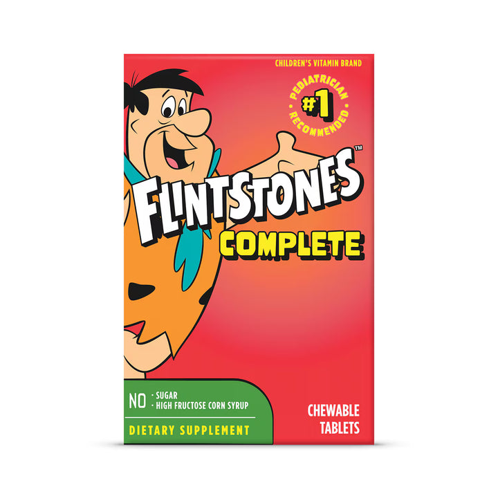 Flintstones™ Complete Chewables Multivitamin are children’s chewable tablets that provide a broad range of essential vitamins and minerals to support overall wellness, including immune health, energy metabolism, bone strength, and eye health. They come in fun Flintstones character shapes and fruit flavors, making them appealing and easy for kids to take.